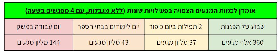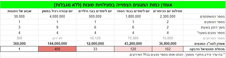 הנתונים שהצגנו מעלה מתבססים על אומדן של היקף האנשים המעורבים בכל פעילות: